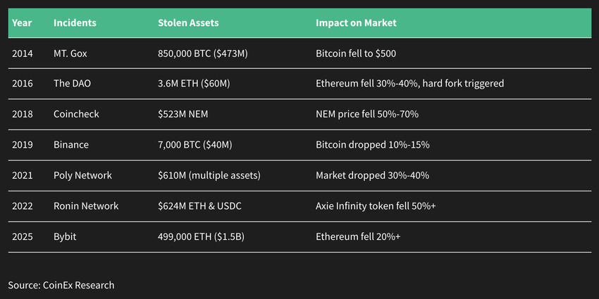 تعرضت منصة Bybit، إحدى أبرز منصات تداول العملات الرقمية المركزية، لاختراق أمني كبير. سرق المخترقون أكثر من 490,000 ETH، تقدر قيمتها بحوالي 1.5 مليار دولار، مما يجعلها واحدة من أكبر عمليات الاختراق في تاريخ المنصات. تم تسييل الأموال المسروقة عبر قنوات متعددة، مما زاد من تقلبات السوق. تراجع سعر الإيثريوم من 2,700 دولار إلى 2,100 دولار بعد الاختراق، مما يعكس حالة الذعر بين المستثمرين. لم يؤثر هذا الحدث على منصة Bybit فقط، بل تسبب أيضًا في تراجع الثقة في المنصات المركزية (CEXs) بشكل عام، مما أدى إلى ضغوط بيعية على منصات أخرى.