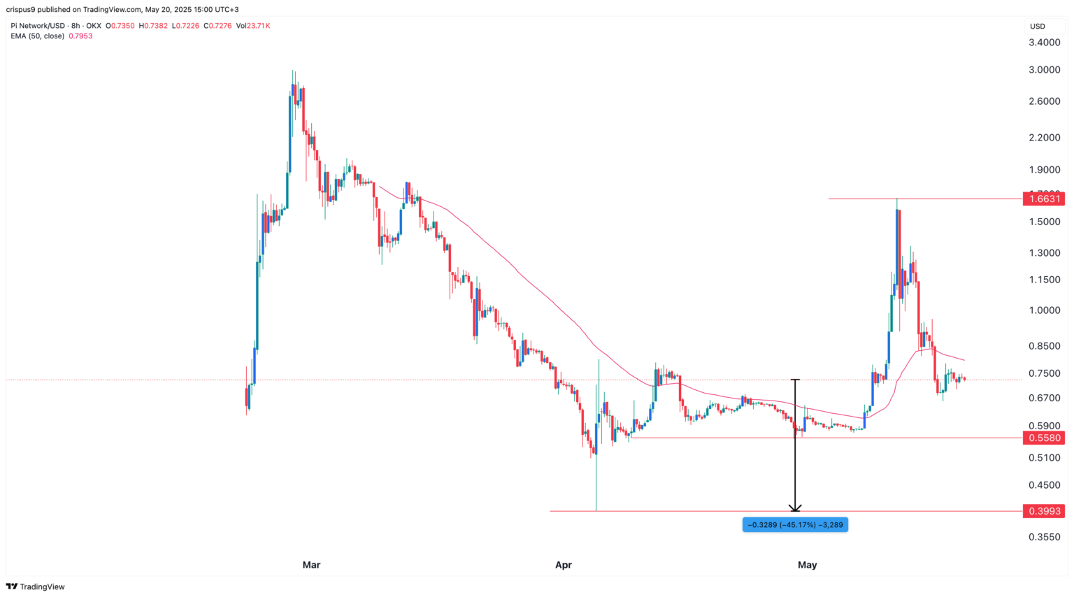 يظهر في الرسم البياني أن سعر شبكة PI قد انخفض منذ 12 مايو، عندما ارتفع إلى 1.6631 دولارًا قبل صدور أخبار النظام البيئي. انخفضت عملة باي الآن إلى ما دون المتوسط المتحرك لـ 50 فترة.
