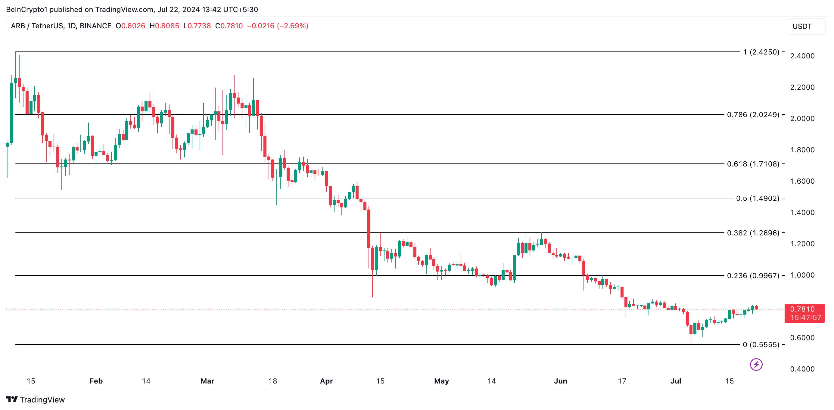 ومع ذلك، قد تنخفض قيمة ARB إلى 0,55 دولار إذا زادت ضغوط البيع.