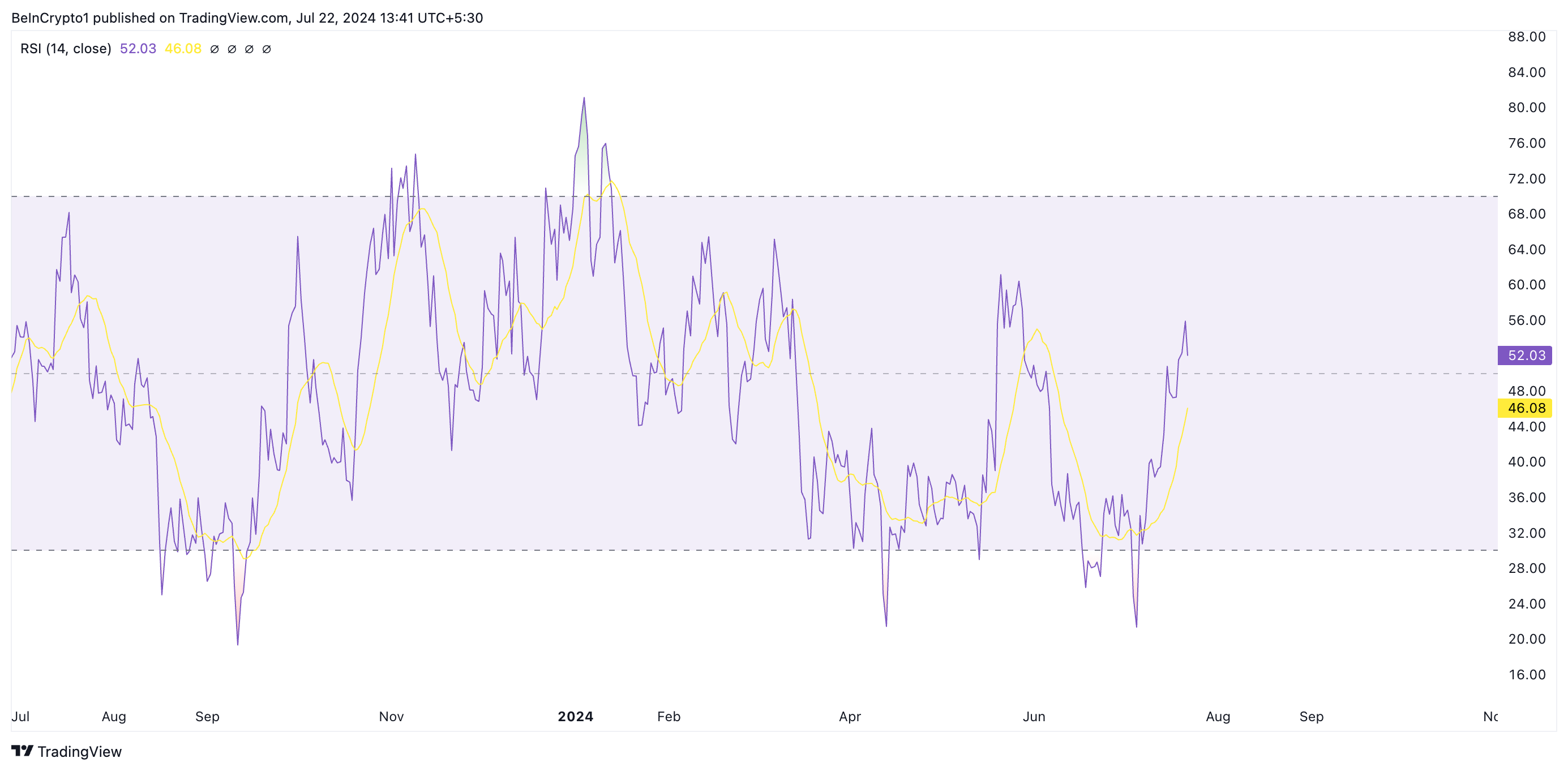 ومع ذلك، قد لا يكون الطلب الحالي على العملة البديلة كافيًا للحفاظ على ارتفاع الأسعار. يستند هذا إلى قراءات مؤشر القوة النسبية (RSI) لـ ARB، والذي يبلغ قيمته الحالية 51,54 وهو في اتجاه هبوطي.