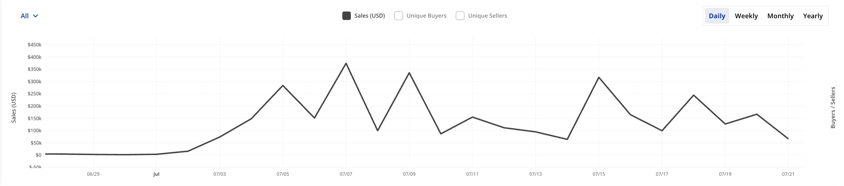علاوة على ذلك، تميزت الأسبوع الماضي بزيادة في مبيعات NFTs المبنية على أربيتروم. خلال هذه الفترة، بلغ إجمالي حجم المبيعات 1,16 مليون دولار، بزيادة قدرها 66%. تعود هذه الزيادة في حجم المبيعات إلى زيادة عدد تجار NFT على الشبكة.