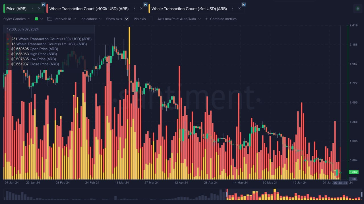 على الرغم من أن سعر أربيتروم (ARB) قد ارتفع بنسبة 22% منذ ذلك الحين، فإن انخفاض الطلب من المستخدمين على شبكة L2 يهدد بمحو هذه المكاسب.
