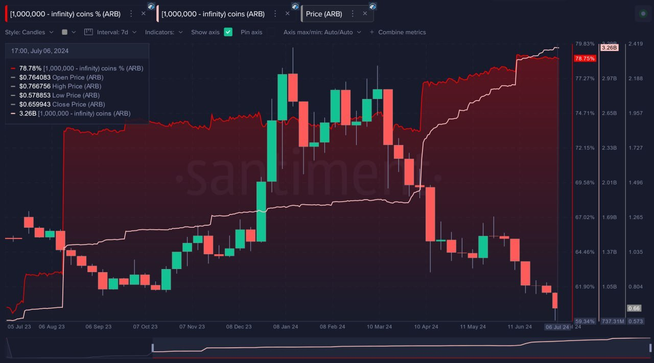 أضاف كوينليفن أيضاً أن المحافظ التي تحتفظ بما لا يقل عن مليون أرب تحتفظ بنسبة عالية جداً من إمدادات أربيتروم على الرغم من الانخفاض الكبير في سعرها في 2024.