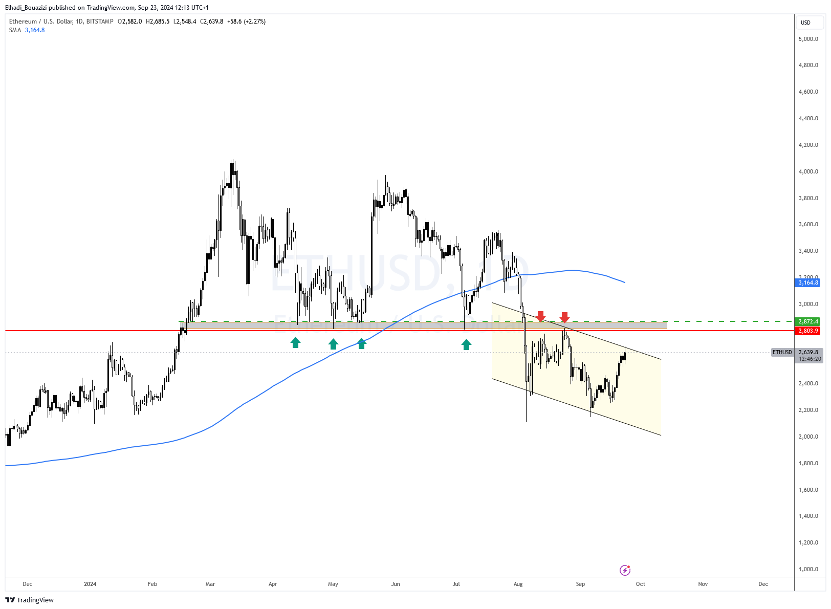 يجب على سعر ETH اختراق المقاومة الأولي و التأكيد بالإغلاق فوق مستوى 2870 دولار، قبل توقع ارتفاع السعار فوق مستوى 3500 دولار.