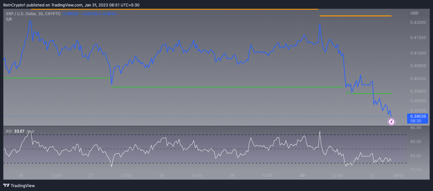 يتقلص سعر XRP بين المتوسط المتحرك لـ20 يومًا إلى 0.40 دولار والمقاومة العامة عند 0.42 دولار.