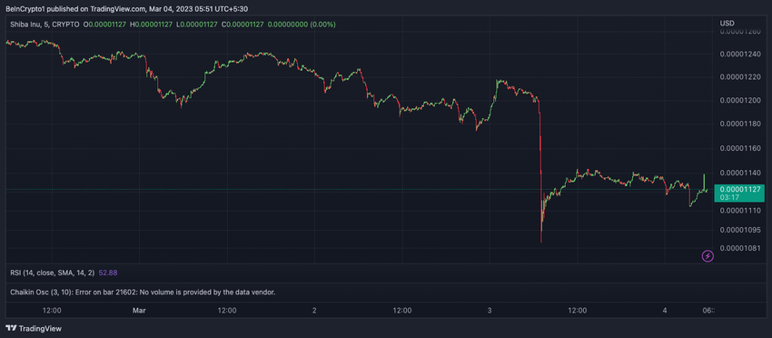 نتيجة لذلك، انخفض سعر شيبا اينو SHIB إلى ما دون نقطة الدعم الثانوية عند 0.00001130 دولار، مسجلاً أضعف سعر له منذ 25 يناير في هذه الجلسة. ثم ارتد السعر قبل نقطة الدعم السفلى عند 0.00001085 دولار.