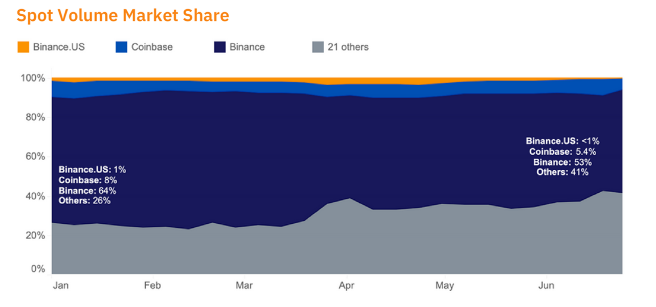 واستحوذ المنافسون الآسيويون مثل Bybit و OKX على معظم حجم التداول داخل بورصة العملات المشفرة بينانس.