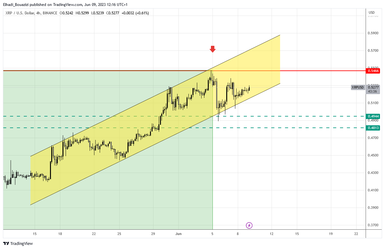 مند نهاية شهر مارس و سعر XRP يحاول اختراق مستوى المقاومة القوي جدا 0.55 دولار و لكنه فشل في ذلك. و منذ 10 أيام و هو يتداول في نطاق جانبي محصور هذه المقاومة مستوى 0.50 دولار الذي يمثل تصحيح فيبوناتشي 38.2%.