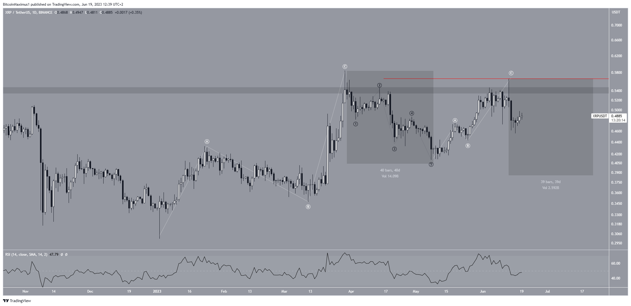 ويوفر العد الموجي نظرة هبوطية. حيث أن الزيادات السابقة تبدو مثل الهياكل التصحيحية A-B-C (أبيض) بينما الانخفاض الذي بدأ في مارس (أسود) يبدو تصحيحيًا. نتيجة لذلك، فمن المحتمل أن ينخفض سعر XRP إلى مستوى 0.38 دولار.