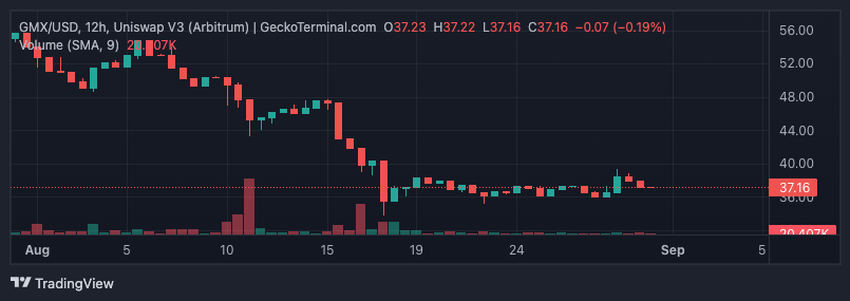 وفقًا للبيانات على السلسة، فجر 30 أغسطس، انخفض مؤشر GMX بنسبة 3.70% خلال الـ 24 ساعة الماضية وانخفض بشكل أعمق بنسبة 31.5 % خلال الثلاثين يومًا الماضية. حيث يتم تداول الأصل عند 37.20 دولارًا وبقيمة سوقية إجمالية تبلغ 334 مليون دولار.