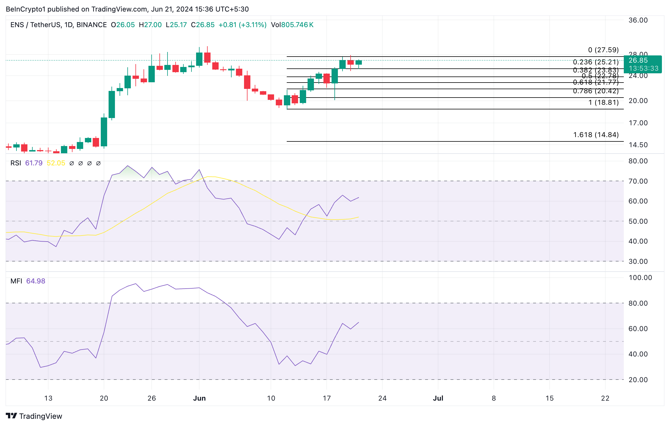إذا استمر الطلب على ENS في الارتفاع، قد يتجه سعره نحو 27,59 دولار.