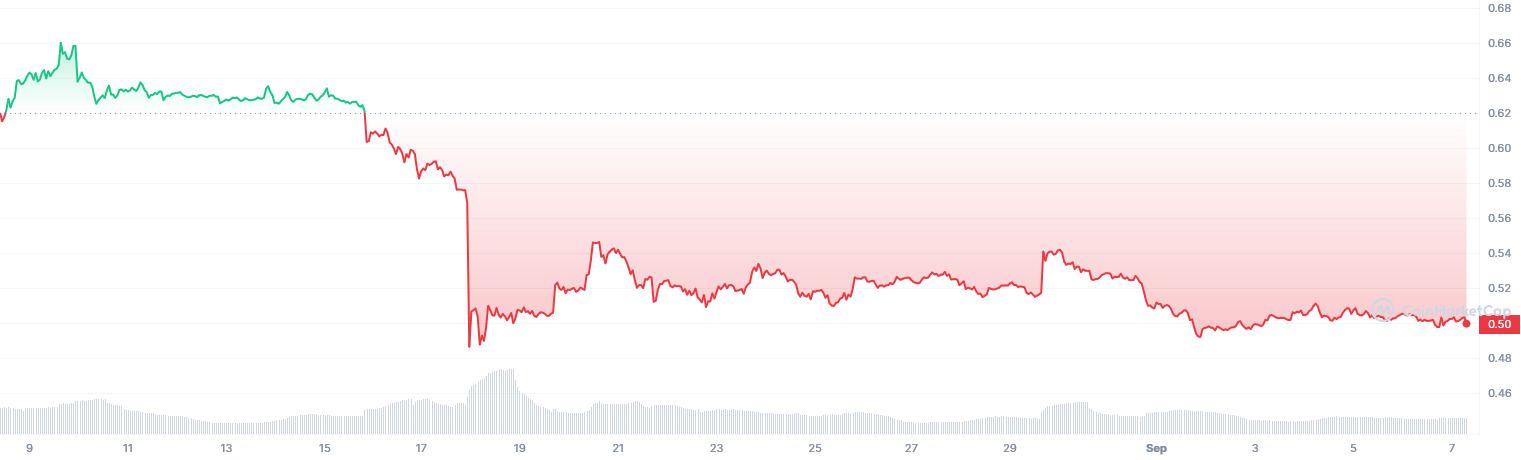 منذ أن تراجع بحد خلال الشهر الماضي متخليا عن كل المكاسب التي حققها بعد الفوز الجزئي الذي حققته شركة ريبل ـ Ripple في قضيتها ضد هيئة الأوراق المالية والبورصات الأمريكية (SEC). و الذي يرجع جزء منه إلى المشاعر السلبية السائدة في سوق العملات المشفرة في الوقت الحالي.