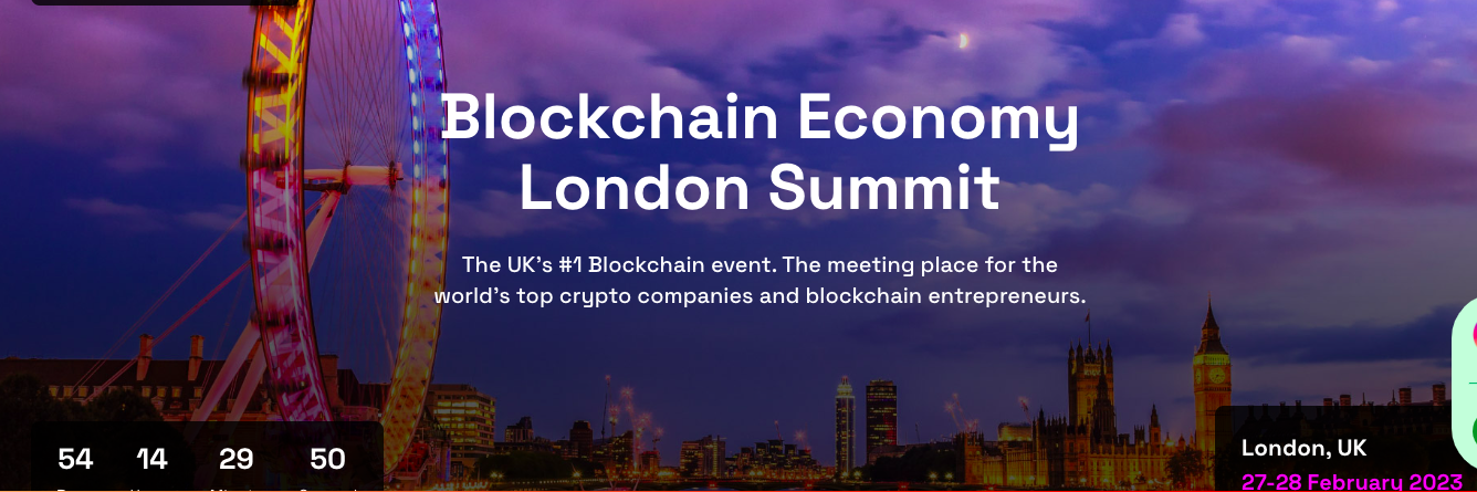 ستنطلق النسخة السادسة من قمة اقتصاد البلوك تشين في 27 فبراير 2023 في لندن، العاصمة المالية للعالم التي توفر وصولاً لا مثيل له إلى الأسواق العالمية. والآن تهدف لندن إلى أن تكون في المقدمة في مجال البلوك تشين والعملات المشفرة على مستوى العالم. كما ستشهد القمة التي تستمر يومين تدفق بعض كبار رواد الأعمال وشركات العملات المشفرة في العالم. لأجل المشاركة في مجموعة واسعة من الأحداث لاستكشاف إمكانات البلوك تشين والأصول الرقمية وweb3 والرموز غير القابلة للاستبدال NFTs والعالم الافتراضي ميتافيرس والمزيد.