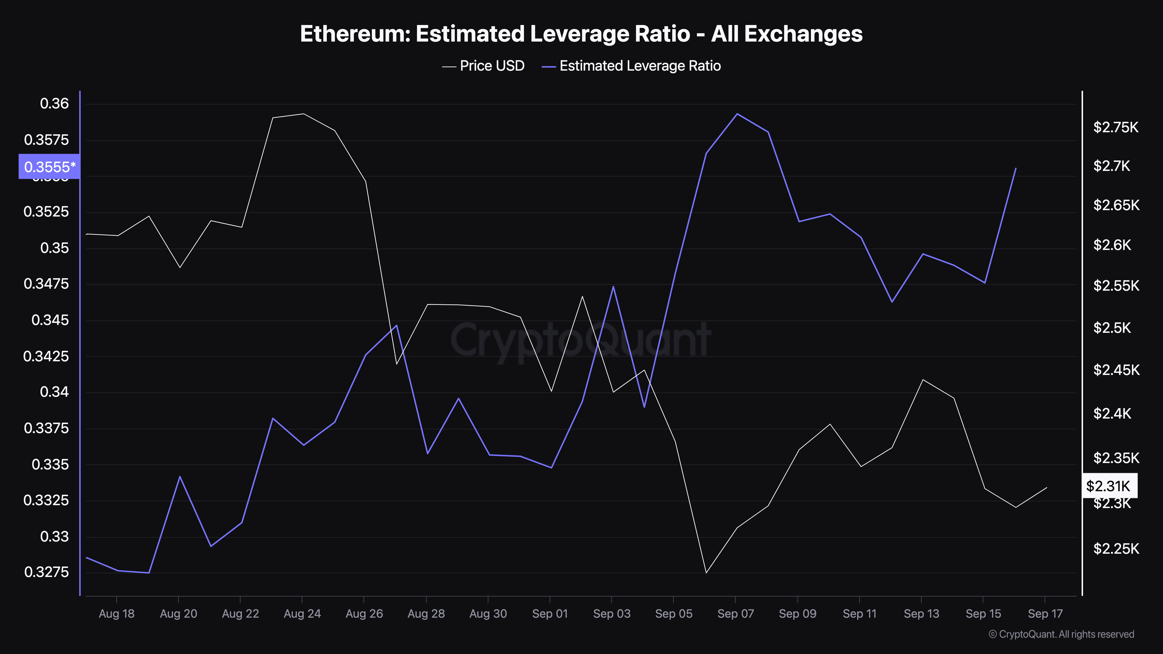 في 15 سبتمبر، شهدت نسبة الرافعة المالية المقدرة لإيثريوم (ELR) — مقياس يظهر ما إذا كان المتداولون يتخذون رهانات عالية الرافعة في سوق المشتقات — انخفاضًا ملحوظًا، مما يشير إلى سلوك حذر في السوق. ومع ذلك، في 16 سبتمبر، ارتفعت ELR إلى أعلى مستوى لها في أكثر من شهر، مما يشير إلى تحول حيث بدأ المتداولون في اتخاذ مراكز عالية الرافعة.