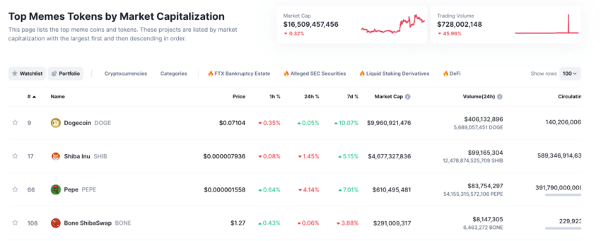 في سياق متصل، تُظهر بيانات منصة CoinMarketCap أن سوق عملات الميم يُقدر قيمته الآن بأكثر من 16.5 مليار دولار، مع استمرار الضجة حول هذه العملات في النمو.
