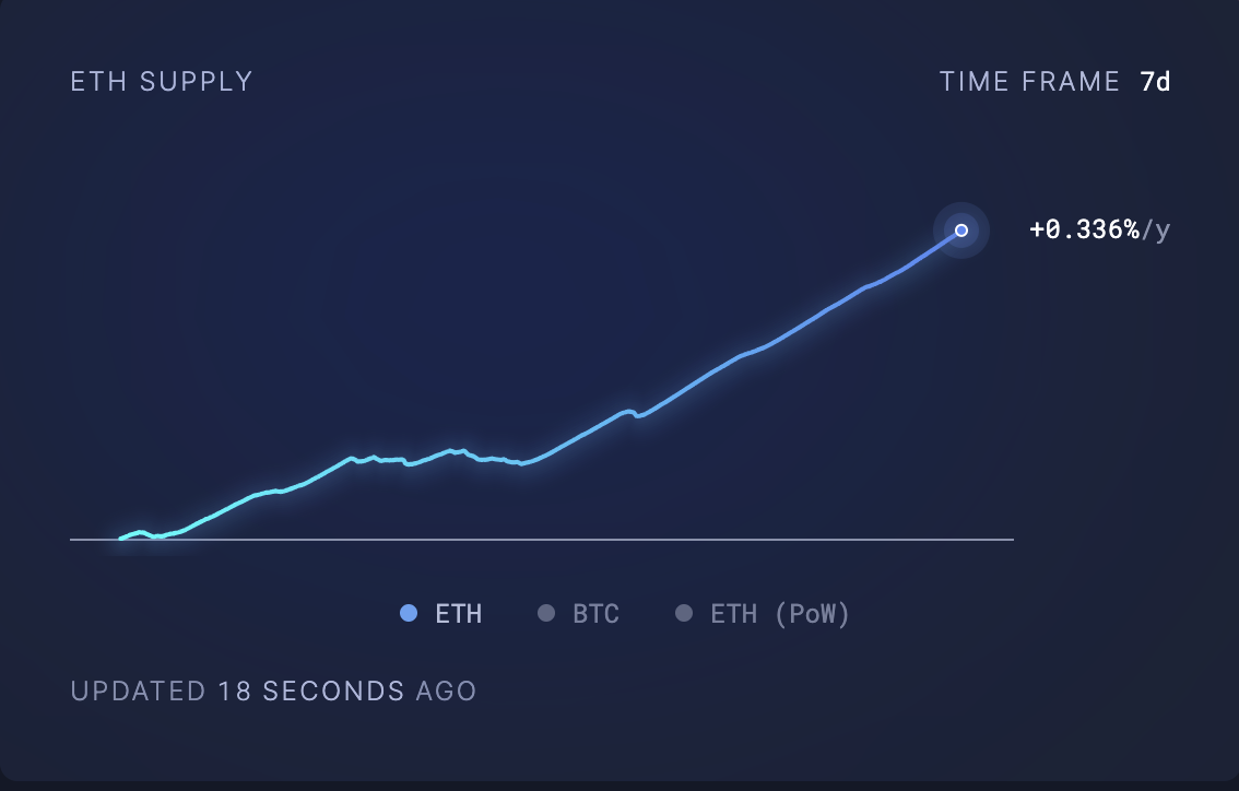 وفقًا لبيانات من Ultrasound Money، تم إضافة 7 728 عملة ETH بقيمة تزيد عن 20 مليون دولار إلى التداول خلال الأيام السبعة الماضية بالأسعار السوقية الحالية. يحدث هذا الارتفاع في العرض المتداول للإيثريوم عادةً عندما ينخفض نشاط المستخدمين على شبكة الطبقة الأولى (L1).