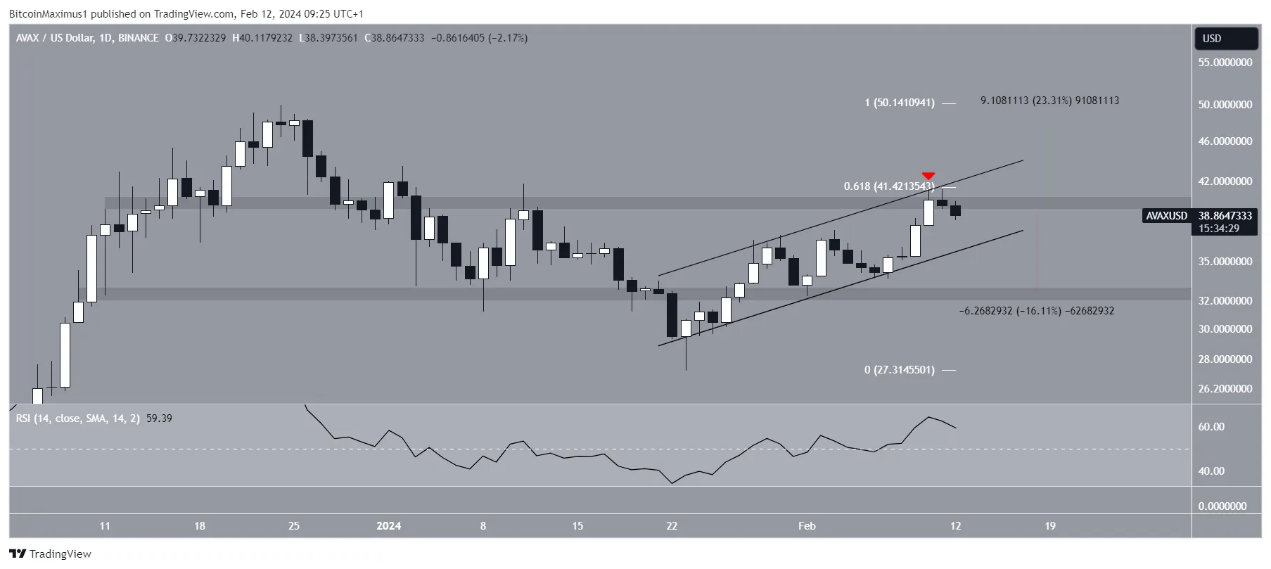 في 10 فبراير، رفض خط اتجاه المقاومة للقناة سعر AVAX (الرمز الأحمر). بالإضافة إلى ذلك، تزامن الرفض مع منطقة المقاومة 40 دولارًا.