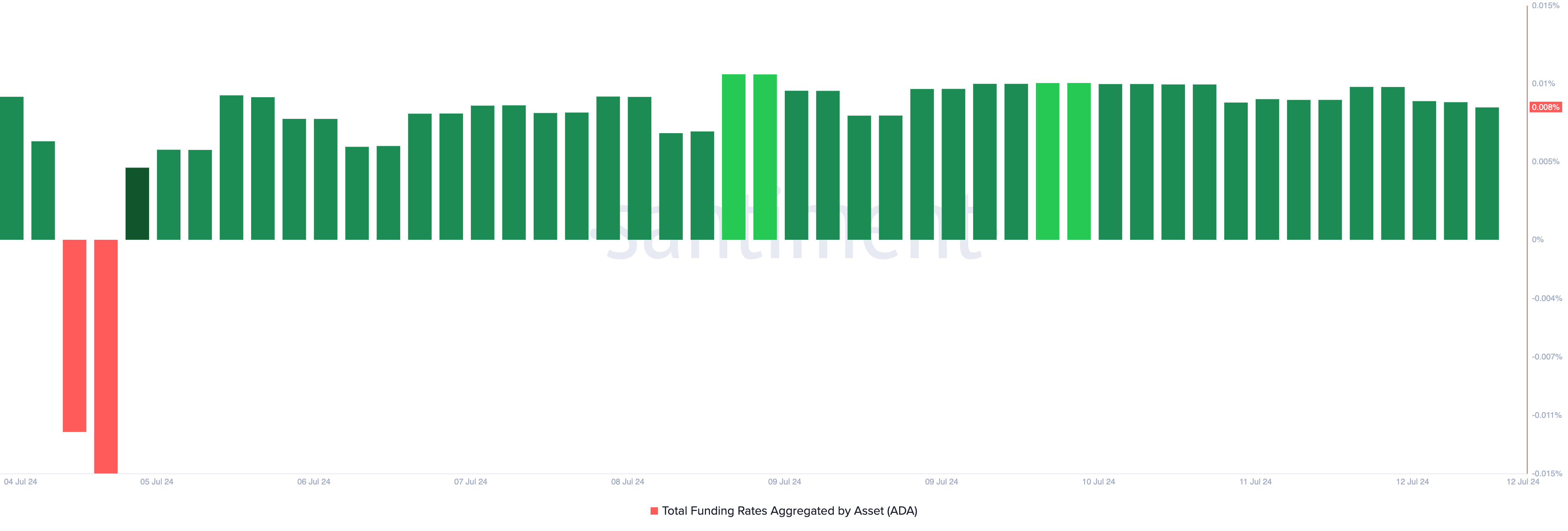 بالإضافة إلى ذلك، معدل التمويل الإيجابي لـعملة ADA البالغ 0,008% يعزز أيضًا هذه النظرة الصعودية. يشير معدل التمويل الإيجابي إلى أن المتداولين يدفعون علاوة للحفاظ على المراكز الطويلة، مما يعكس توقعات بارتفاع محتمل في السعر. مع اقتراب عملة ADA من مقاومتها عند 0,40$، تشير معنويات السوق إلى احتمال حدوث اختراق.