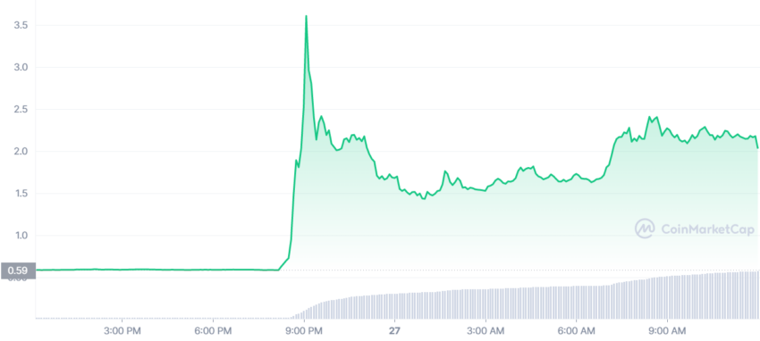 فقد ارتفع سعر العملة المرتبطة ببروتوكول سيجنال من 0.58 دولار إلى 2.98 دولار إبان فترة التداول.