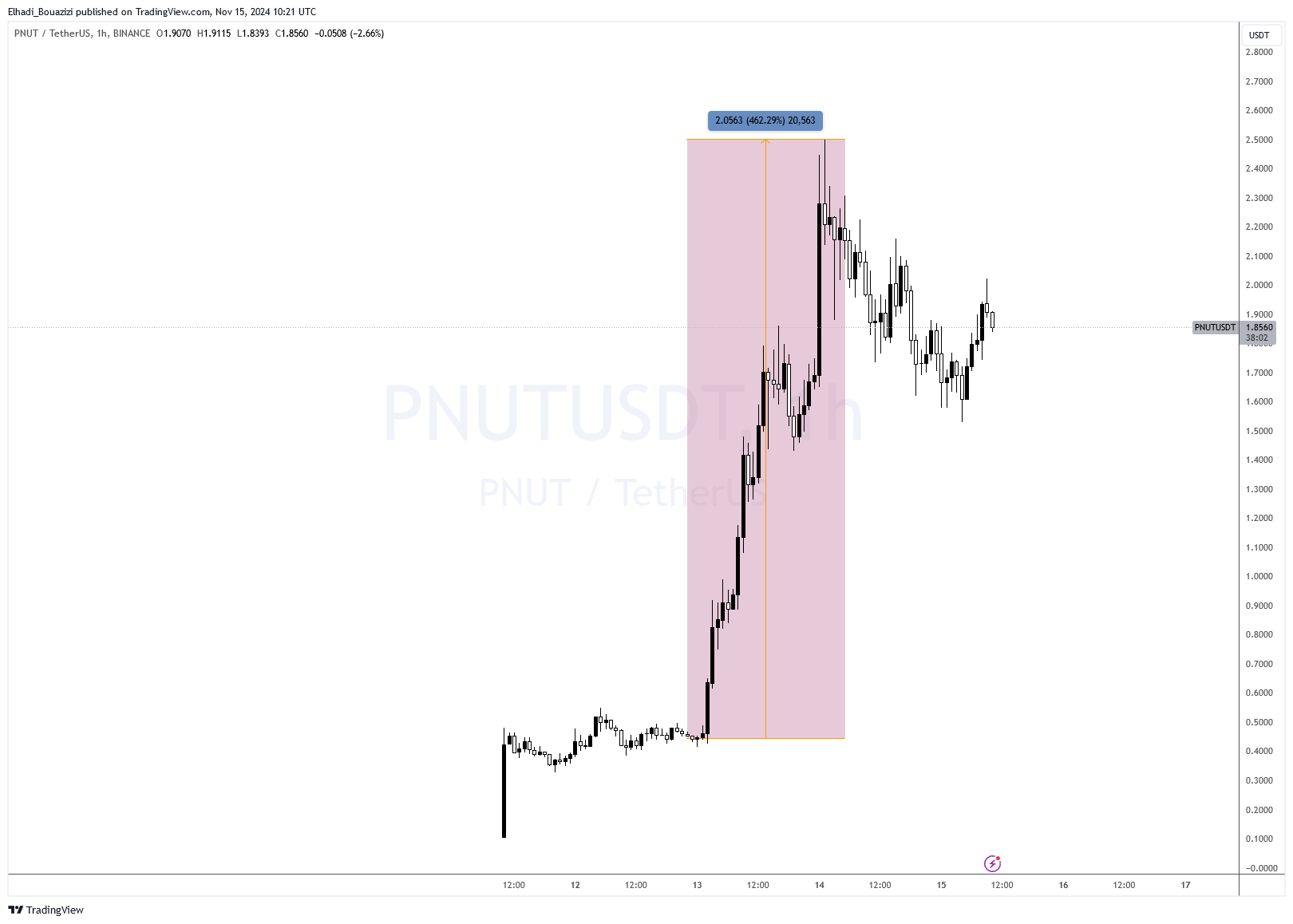 شهدت عملة الميم PNUT ارتفاعًا حادًا بنسبة تقترب من 460% خلال اليومين الماضيين، محققة سعرًا قياسيًا بلغ 2.5 دولار أمريكي في 14 نوفمبر، قبل أن تستقر عند حوالي 1.90 دولار. عملة PNUT التي تعمل على شبكة سولانا، تصدرت قائمة الرابحين في السوق. كما ارتفعت قيمتها السوقية إلى نحو 1.8 مليار دولار، مما أوصلها إلى قائمة أكبر 50 عملة رقمية.