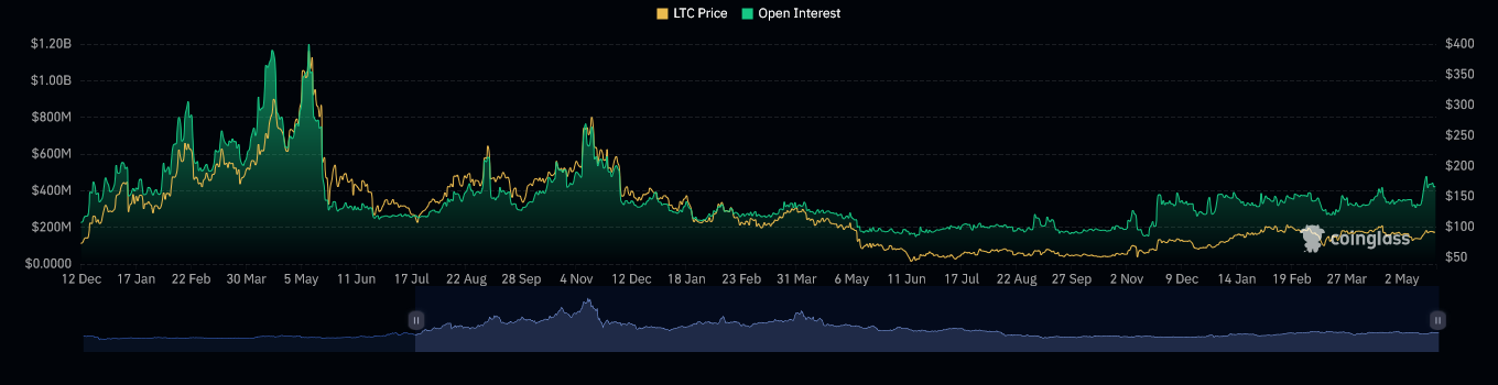وحسب بيانات منصة CoinGlass المتخصصة في جمع وتحليل بيانات سوق العملات الرقمية. فإن هذه الزيادة الكبيرة في الطلب على عقود عملة لايتكوين هي الأعلى الملاحظة منذ بداية عام 2022.