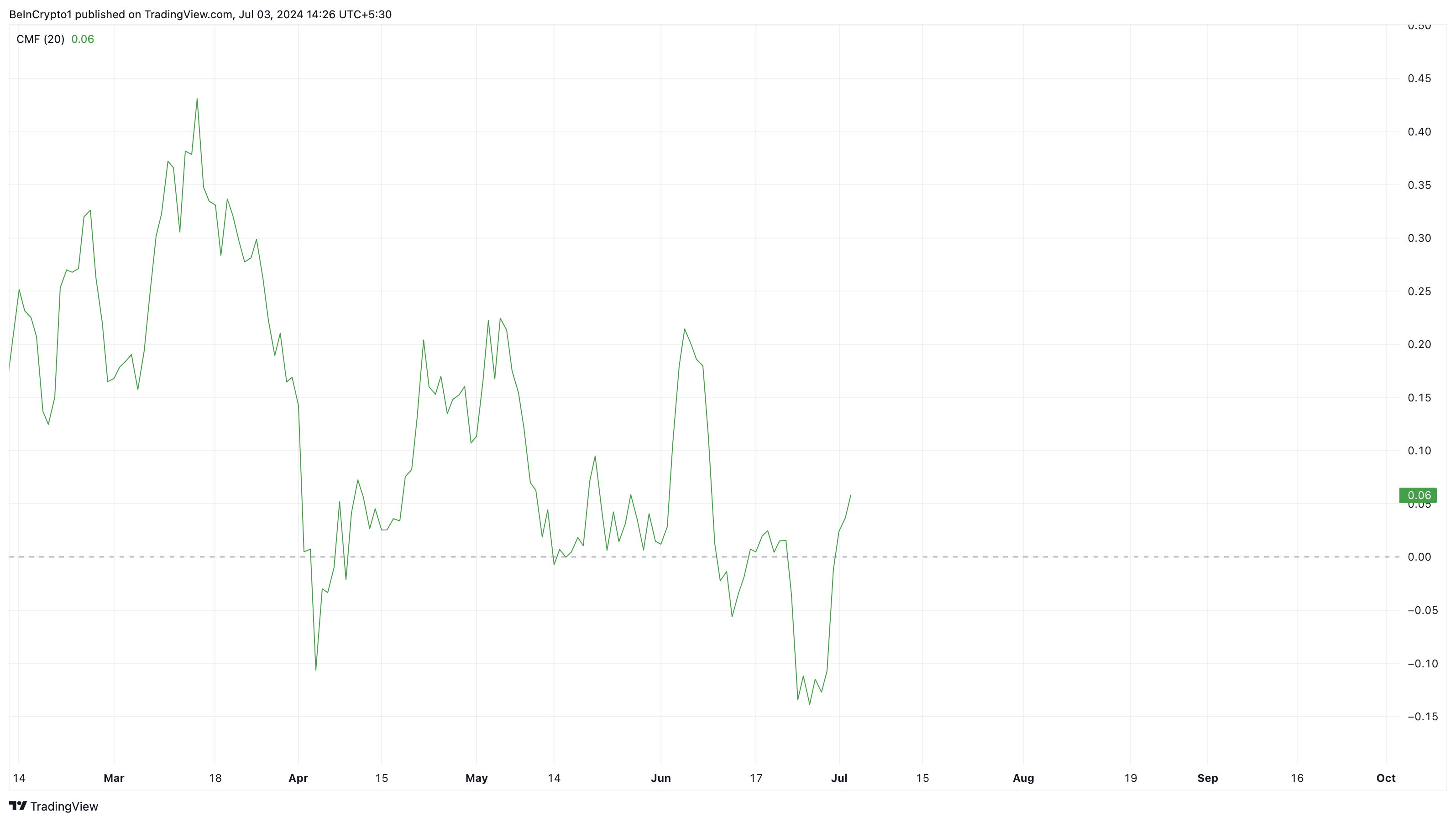 وفقًا للرسم البياني اليومي، قد تستمر BNB في التحرك نحو 600 دولار. أحد المؤشرات التي تغذي هذه الرواية هو تدفق الأموال Chaikin (CMF)، الذي يميز بين فترات التجميع وتلك الخاصة بالتوزيع.