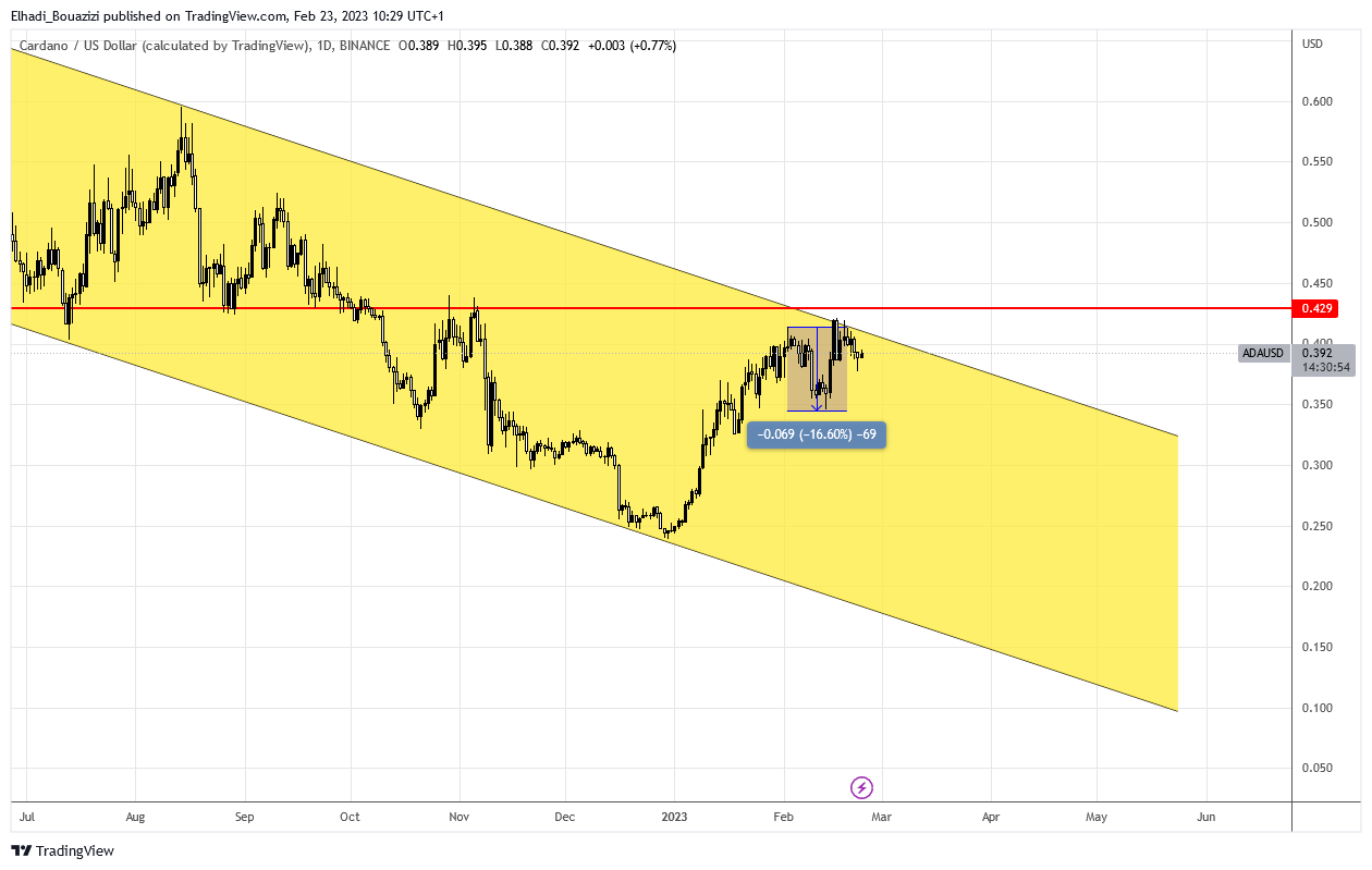 هذه التطورات الإيجابية في نشاط كبار المستثمرين (الحيتان) و المطّورين على شبكة كاردانو . لم ينعكس مباشرة على سعر عملتها الأصلية كاردانو (ADA) الذي تحرك في الاتجاه الهابط طيلة النصف الأول من شهر فبراير. و انخفض بأكثر من 16%  من 0.414 دولار إلى 0.360 دولار. قبل أن يعود و يقلل من تلك الخسائر يحيث يتداول في وقت كتابة هذا التقرير في حدود 0.392 دولار.