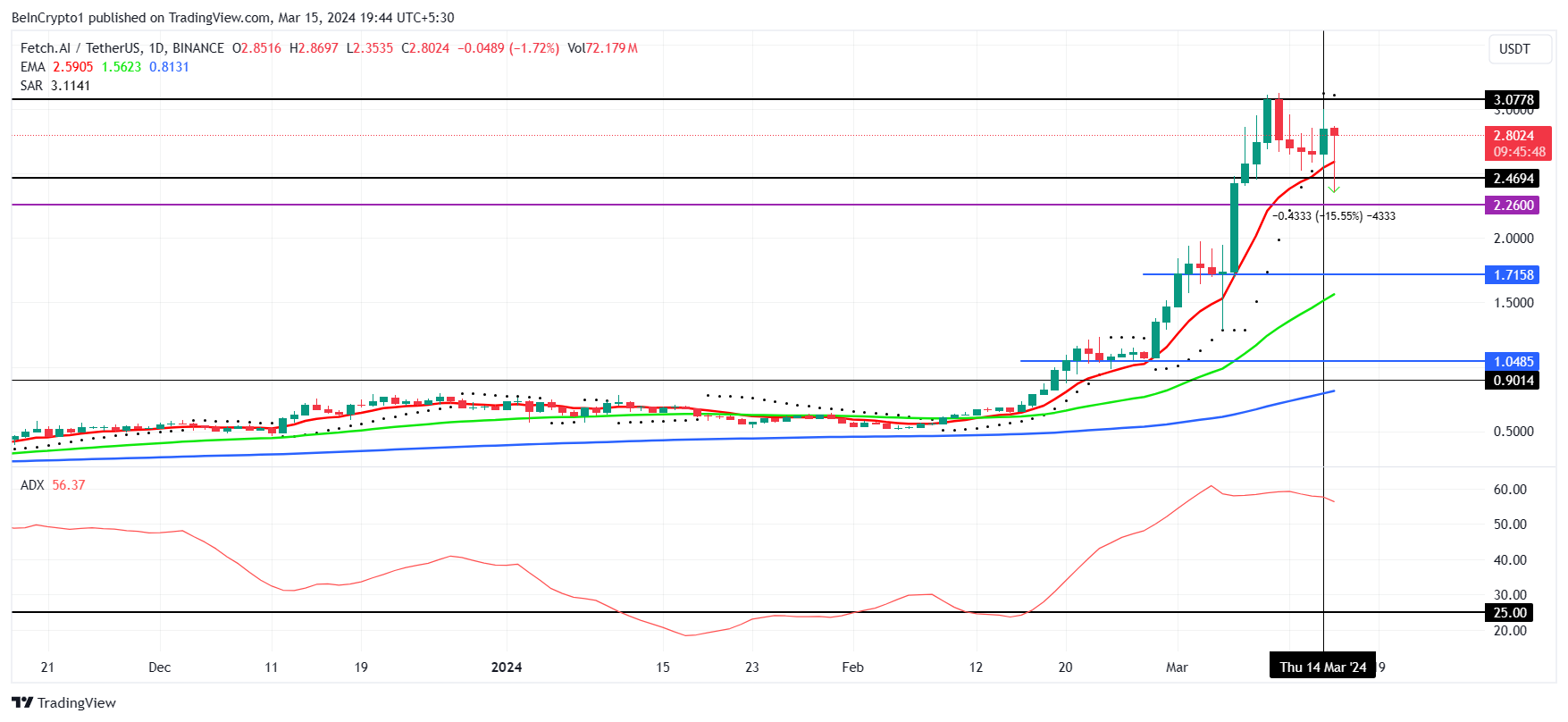 وبالتالي، يمكن رؤية سعر Fetch.ai يتداول عند 2.80 دولار في وقت كتابة هذا التقرير.