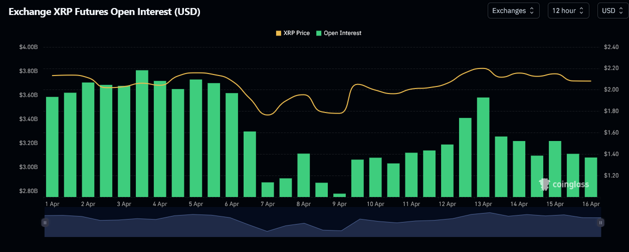 حسب بيانات منصة ِCoinglass قد تراجع حجم التداول بنسبة 12% ليبلغ 3.4 مليار دولار بعد أن تجاوز سابقًا 4 مليارات، فيما انخفض حجم الفائدة المفتوحة بأكثر من 5% ليستقر عند 1.45 مليار XRP، أي ما يعادل نحو 3 مليارات دولار من حيث القيمة. ومع ذلك، لم يتأثر السعر سلبًا رغم هذا الانخفاض في النشاط.