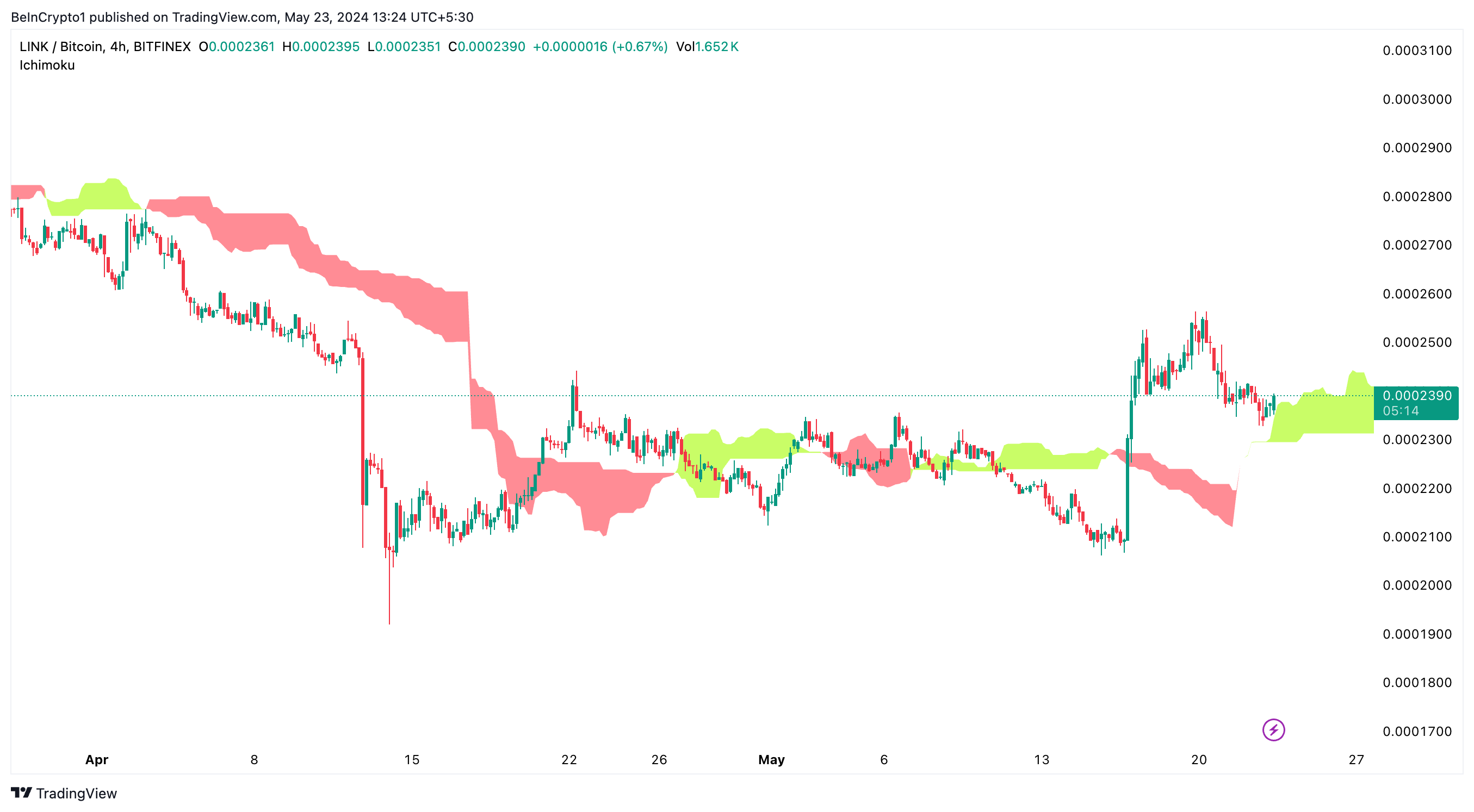 بالإضافة إلى ذلك ، دخل LINK / BTC على الإطار الزمني اليومي للتو سحابة إيشيموكو ، مما يشير إلى مسار تصاعدي محتمل. غالبا ما يكون الدخول إلى السحابة مقدمة لزيادة الأسعار ، مما يشير إلى أن LINK قد تشهد المزيد من المكاسب مقابل Bitcoin.