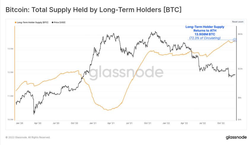 ووفقاً لمنصة Glassnode المتخصصة في تحليلات العملات المشفرة، فقد ذكر التقرير الإسبوعي للسلسلة إلى وصول إمدادات العملة إلى أعلى مستوياتها عند 13.9 مليون بيتكوين، في ظل الخسائر المتحققة لهذا العام جراء السوق الهابطة.
