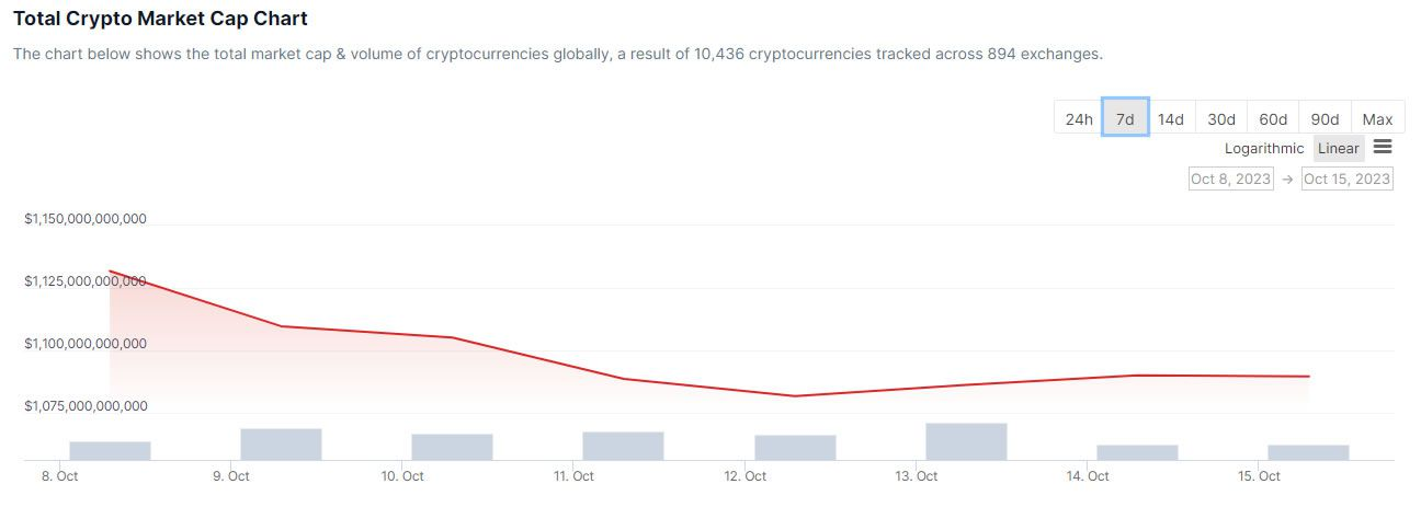 كما ارتفع إجمالي القيمة السوقية بنحو 1% خلال اليوم ليصل إلى 1.1 تريليون دولار. ومع ذلك، فقد ظل ضمن نطاق ضيق منذ سقوطه في منتصف أغسطس.