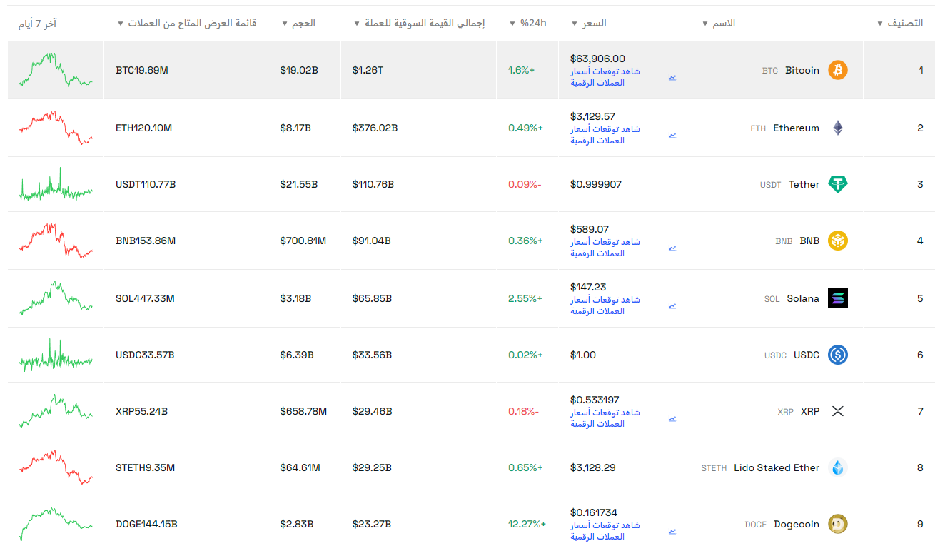 انتعشت العملات المشفرة يوم الجمعة بقيادة مكاسب بيتكوين (BTC)، ما أثار آمالاً بأن أسوأ التراجع قد يكون قد انتهى. وارتفعت عملة البيتكوين وصعدت إلى 64 ألف دولار في الساعات السابقة. وقد بعد الإنعاكس الصعودي بعد تقرير الوظائف الأمريكي لشهر أبريل الذي جاء أقل من المتوقع، مما خفف المخاوف من ارتفاع أسعار الفائدة. في وقت النشر، كان سعر بيتكوين 61,600 دولار، بارتفاع نسبته 4.4%.