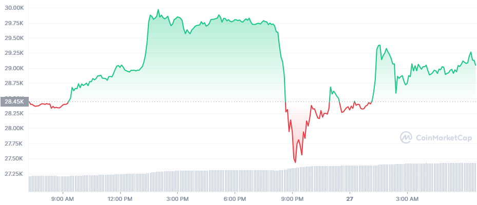 وبالرغم من هذا الارتفاع، فإن عملتي البيتكوين BTC والإيثر ETH ما لبثت أن تراجعت و تتداولان الآن دون المستويات الرئيسية البالغة 30000 دولار و 2000 دولار، على التوالي. التي تم تداولها قبل أسبوعين لأول مرة منذ العام الماضي.
