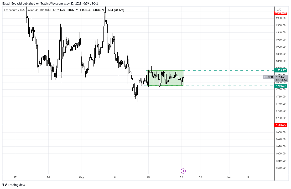 و كذلك سعر إيثيريوم الذي كان محصورًا في النطاق السعري 1790- 1830 دولار.