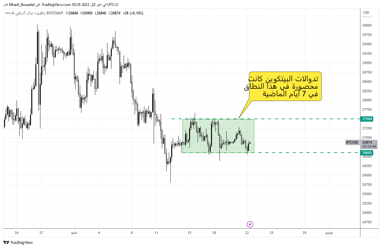 لم تتفاعل عملة البيتكوين بشكل إيجابي حتى الآن مع بيانات مؤشر أسعار المستهلك الأمريكي (CPI) التي صدرت يوم الخميس الماضي وجاءت أقل من المتوقع وجهود رفع سقف الدين الأمريكي المستمرة.