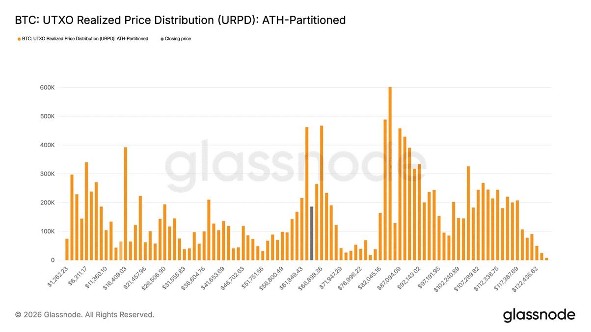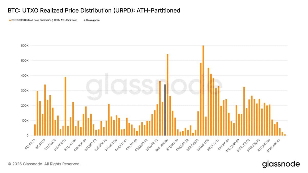 مع ذلك، كشفت تحركات الأسعار اللاحقة عن نقصٍ مقلق في التزام هؤلاء المشترين الذين استغلوا انخفاض الأسعار. فعلى عكس مراحل التعافي السابقة التي أظهرت فيها المراكز المتراكمة مرونةً، أظهرت المجموعة الحالية من مشتري 67,000 دولار فترات احتفاظ قصيرة بشكل ملحوظ. وقد أدى ارتفاع طفيف في السعر يتراوح بين ألفين وثلاثة آلاف دولار فقط إلى جني أرباح فوري، حيث تلاشت هذه المراكز بسرعة بدلاً من الحفاظ على قيمتها.