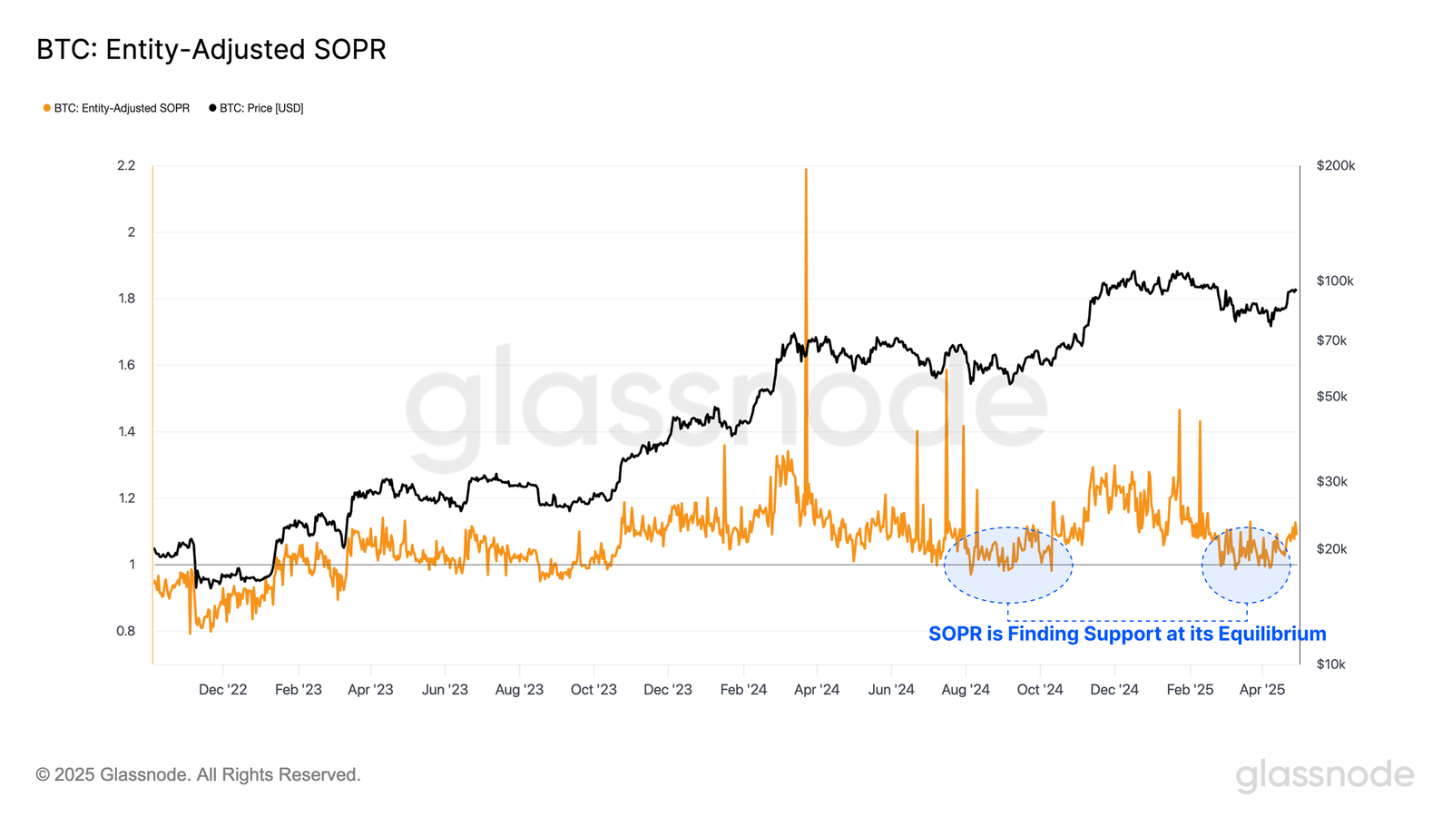 بيتكوين: مقياس SOPR المعدّل حسب الكيانات