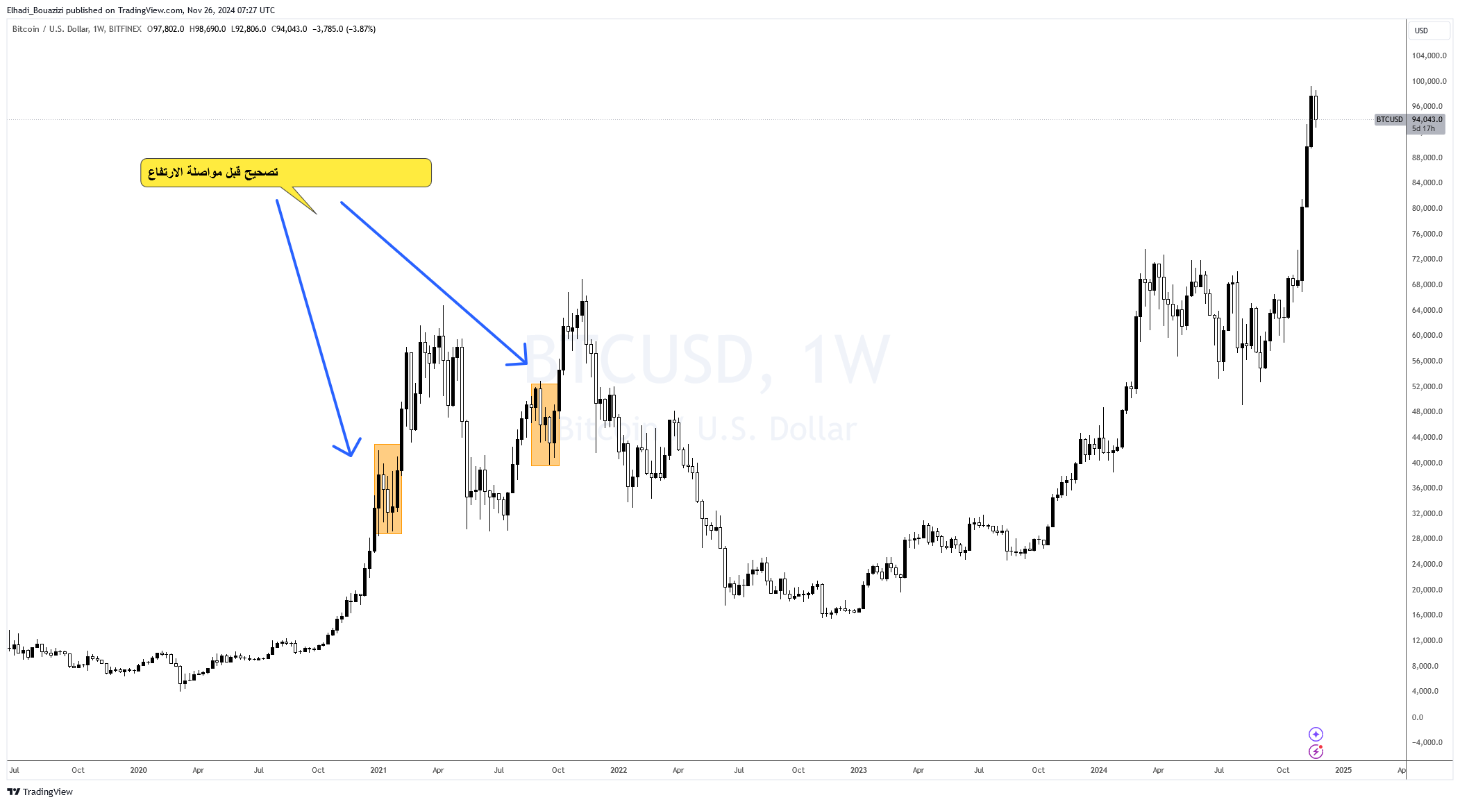 ومع ذلك، قد تحدث تصحيحات قصيرة المدى في حال استمرار الحاملين على المدى الطويل في تحقيق الأرباح وبقاء الحاملين على المدى القصير نشطين.
