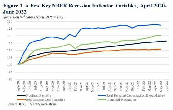 وأضاف أن القرارات الرسمية للركود وتقييم الاقتصاديين للنشاط الاقتصادي ينتج بنظرة شاملة على البيانات مثل سوق العمل والإنفاق الاستهلاكي والتجاري والإنتاج الصناعي إضافة إلى الدخل.