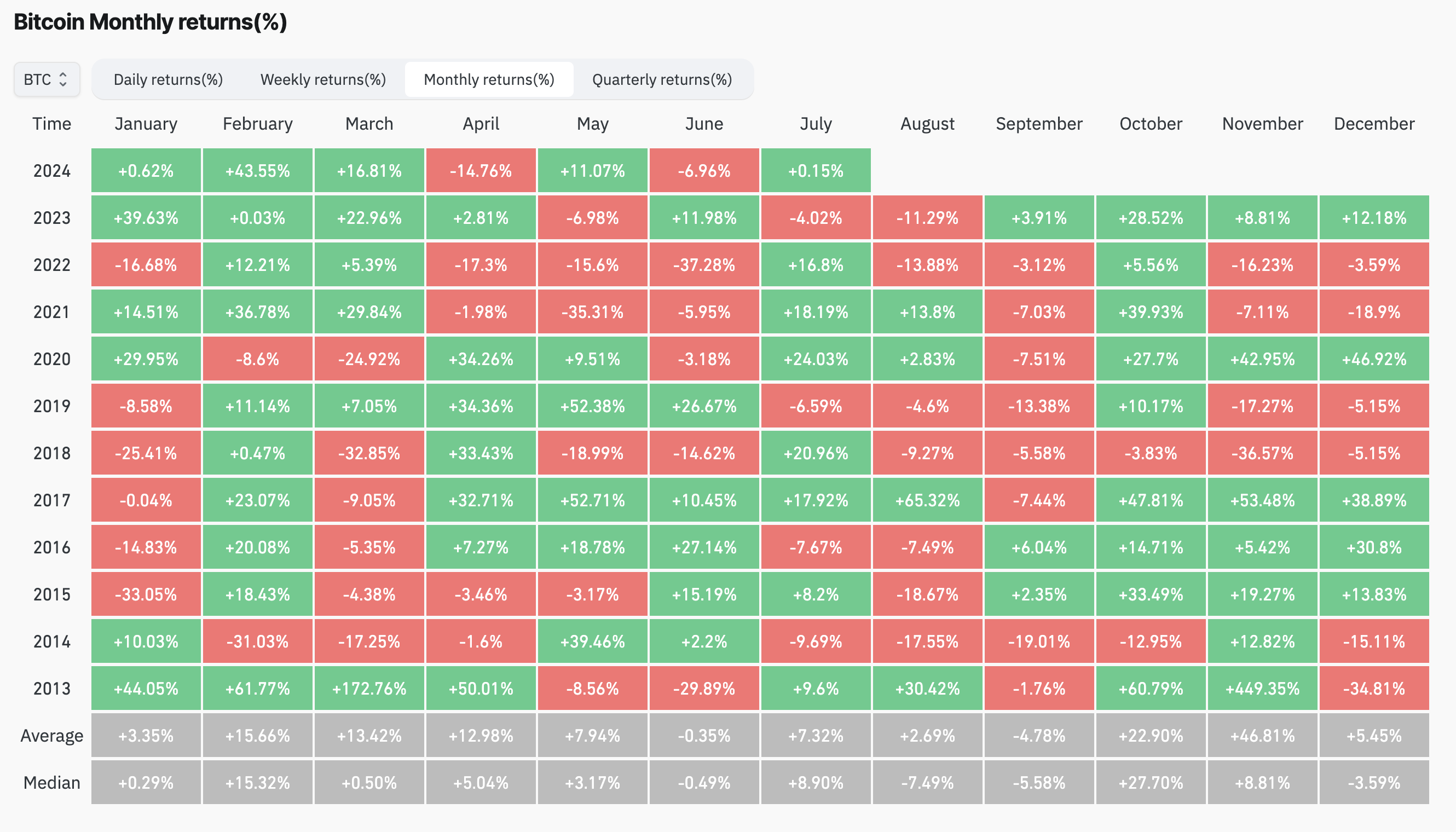 على الرغم من ذلك، تتوقع المجتمع المشفر يوليو صاعدًا. تدعم البيانات التاريخية من Coinglass هذا، حيث تظهر أن بيتكوين، الذي انخفض بنحو 7% من 67,540 دولار إلى 62,772 دولار في يونيو، قد ارتد عادةً في يوليو بمكاسب كبيرة.