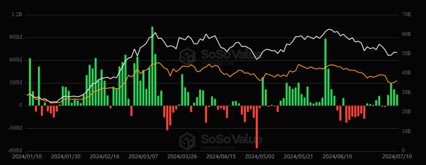 على الرغم من أن سعر البيتكوين كان أقل من 60,000 دولار خلال الأيام السبعة الماضية، فإن المستثمرين يظهرون ثقة في العملة المشفرة. كما تظهر هذه العودة في التدفقات الأخيرة إلى صناديق الاستثمار المتداولة للبيتكوين الفورية في الولايات المتحدة وهونغ كونغ.