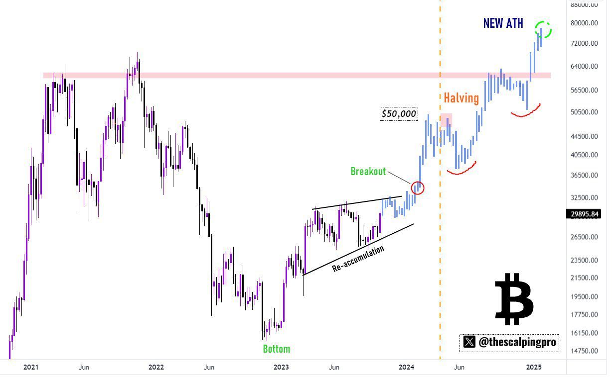 و هناك توقعات بوصول البيتكوين إلى أعلى مستوى له على الإطلاق قبل نهاية عام 2024. مع المزيد من المكاسب وتحقيق ذروات جديدة في عام 2025.