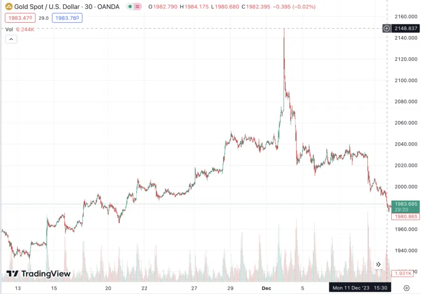 وقال: "يولي المستثمرون المزيد من الاهتمام للذهب لأنهم لا يريدون أن يفاجأوا في عام 2024".