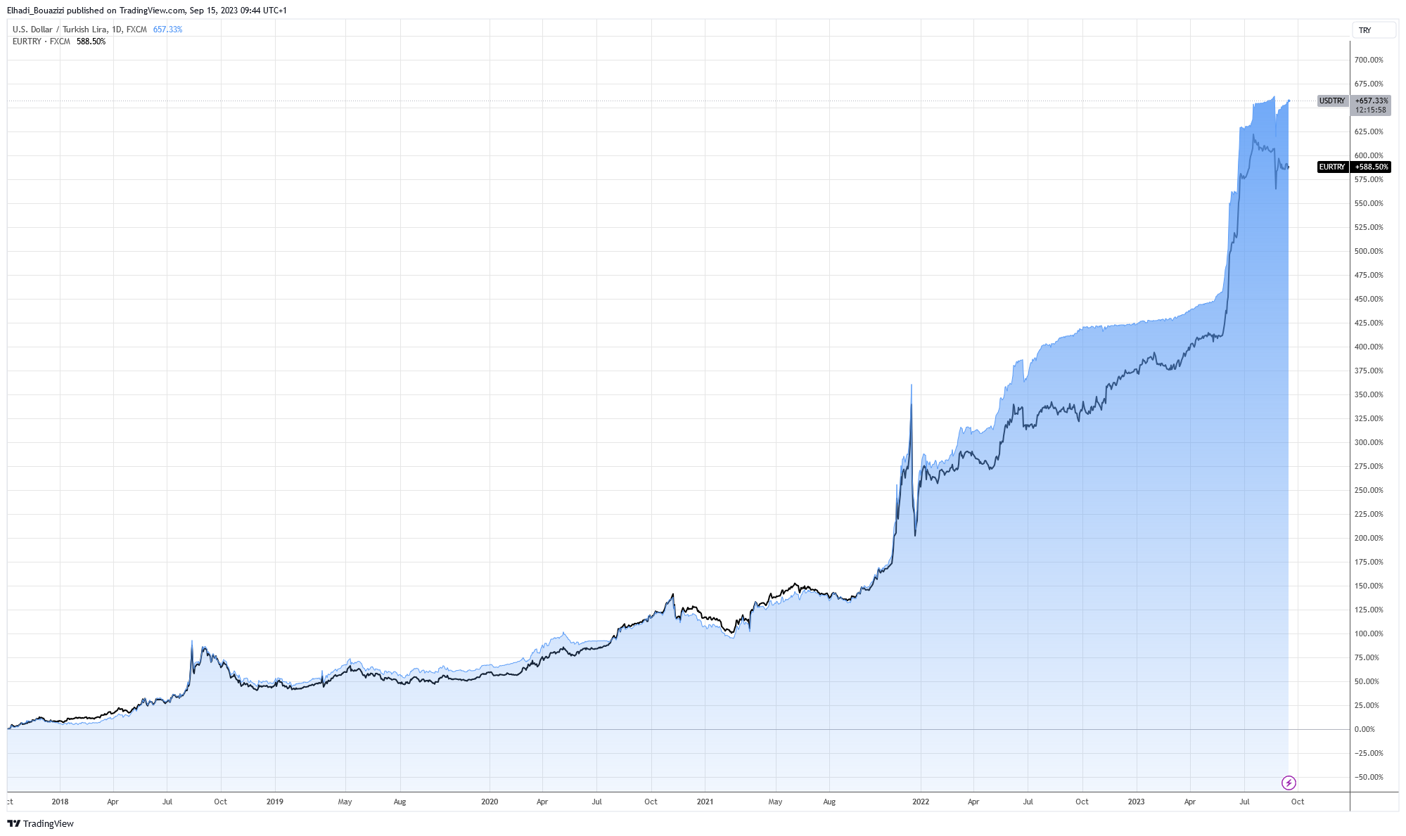 حتى 14 سبتمبر، تفوقت الليرة التركية على اليورو والريال البرازيلي (BRL) في حجم التداول. وعلى مدى السنوات الثلاث الماضية، اكتسبت شعبية مقارنة بالعملات النقدية التقليدية.