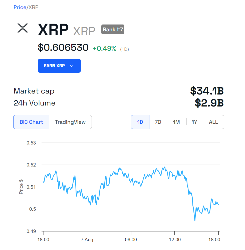 ومع ذلك، بعد تقارير عن استئناف SEC المحتمل، انخفض سعر XRP بنحو 6%، من 0,6415 دولار إلى 0,6008 دولار.