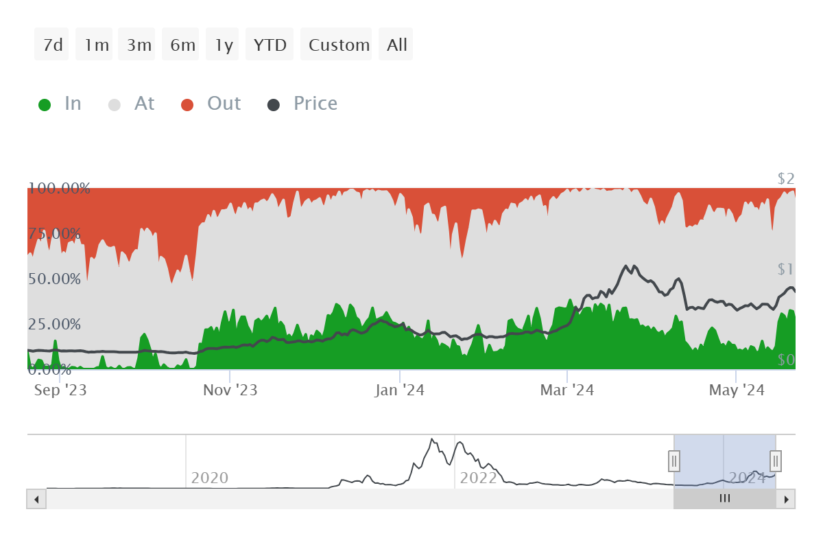 انخفض سعر فانتوم (FTM) من خلال الدعم الحاسم لتصحيح فيبوناتشي 61.8٪، مما ترك العملة البديلة عرضة لمزيد من الخسائر. كما أن حاملي FTM لا يدعمون الانتعاش بشكل كبير، حيث قد يتطلعون إلى بيع ممتلكاتهم.