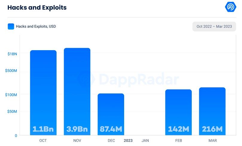 كما ذكرت شركة PeckShield أن المسروقات بقيمة 10.9 مليون دولار، بما يمثل انخفاضاً بنسبة 30% عن قيمة 16.2 مليون دولار في فبراير.