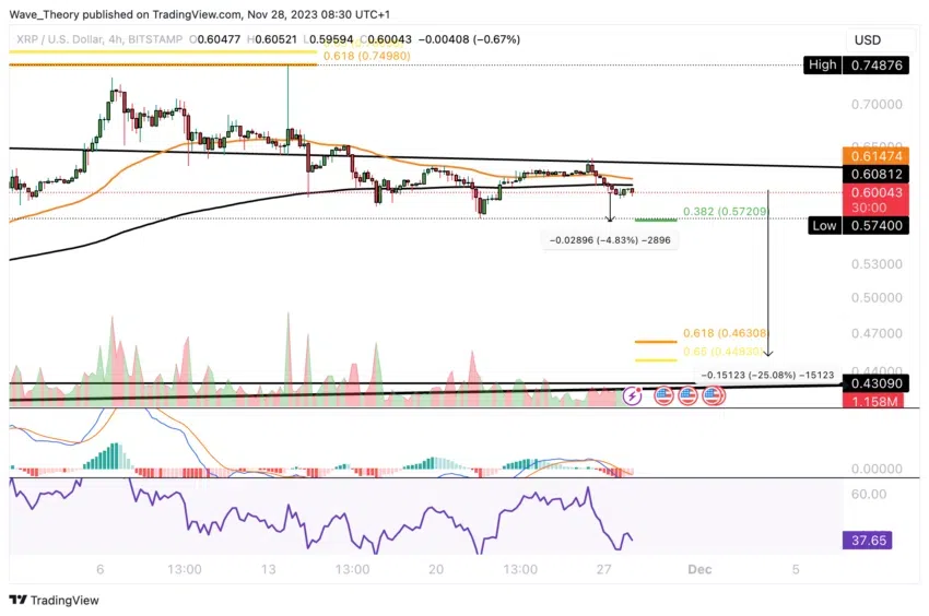 تقاطع الموت المحتمل في مخطط عملة XRP للأربع ساعات: توقع انخفاض الأسعار