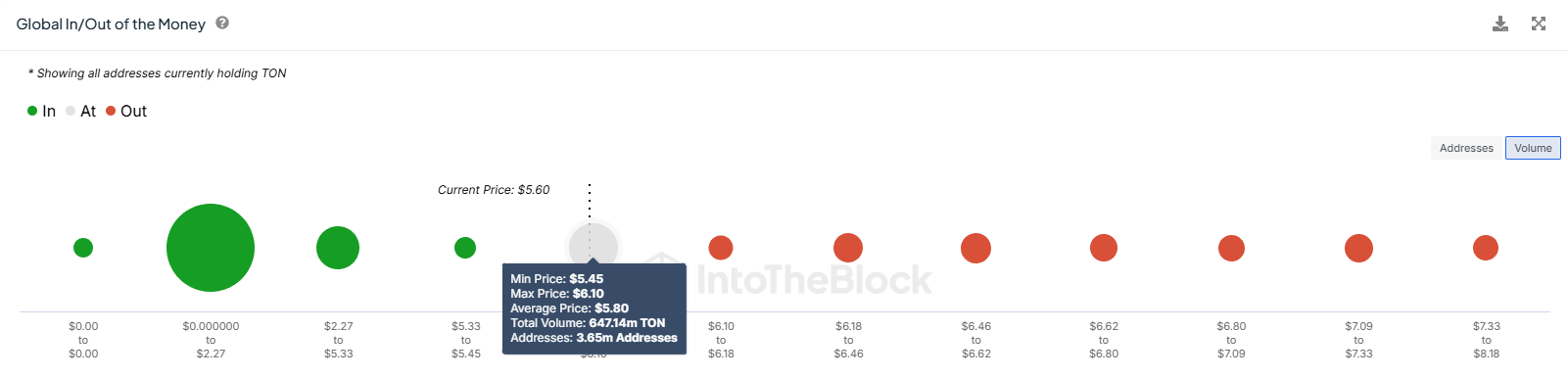 نتيجة لهذه الزيادة في البيع، فقد حوالي 647 مليون رمز TON ربحيتها. وفقًا لمؤشر الدخول/الخروج العالمي، تم شراء هذه الرموز بأسعار تتراوح بين 5,45$ و6,10$.